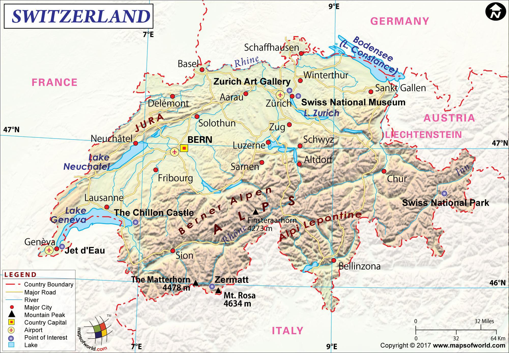 Airports in switzerland map