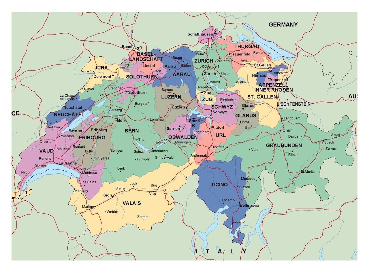 Major cities in switzerland map