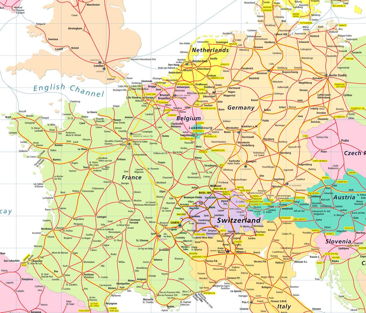 Map of europe showing switzerland. Map of switzerland and europe (Western Europe - Europe) to print. Map of switzerland and europe (Western Europe - Europe) to download.