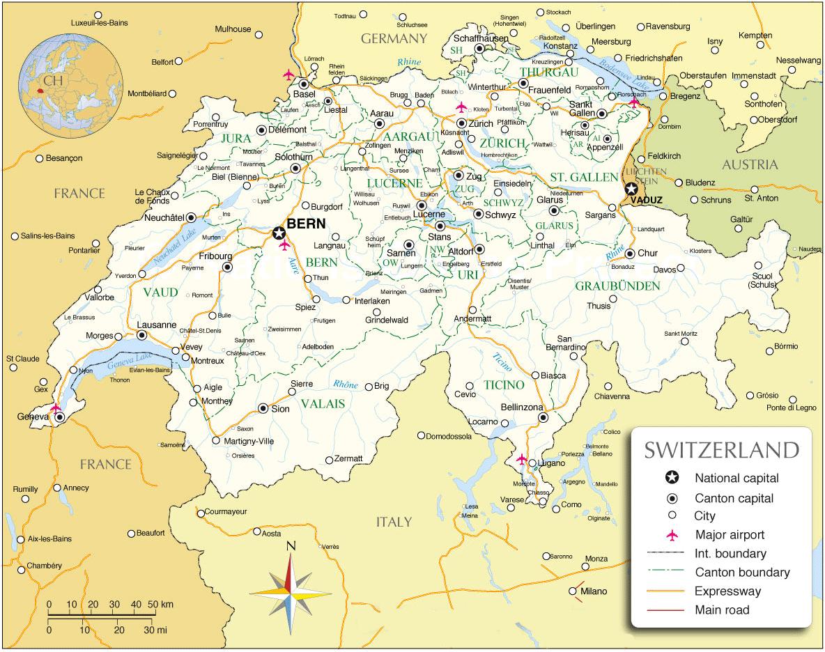 International airports in switzerland map. Switzerland airports map (Western Europe - Europe) to print. Switzerland airports map (Western Europe - Europe) to download.