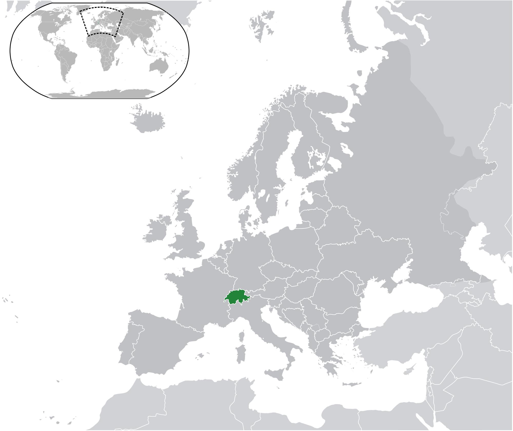 World map showing switzerland. Switzerland location on world map (Western Europe - Europe) to print. Switzerland location on world map (Western Europe - Europe) to download.